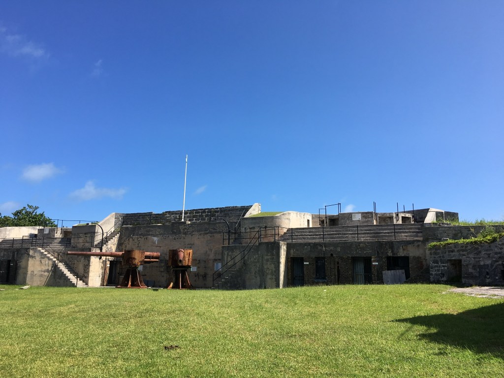 I walked a bit further and just before getting to the very little Gate’s Fort, a huge blast on the ships funnel nearly made me jump out of my skin. I was neck and neck with the Norwegian Cruise Line Ferry. That felt so weird because it usually passes me on the other road, and here I was keeping up with it right beside me while it went through the narrow gap. Then before I could get my camera out, it was off at a roar. Amazing skills around those jagged volcanic reefs. I carried on and wound my way around the point, on The Cut Road, which continues as Barry Road at the Alexander Battery. Bermuda has so many Forts that are now historic, some in need of a little TLC because of the rust here, and some in really great condition. Alexander Battery has a nice little glass beach beside it. I found some there to make necklaces for my sisters before I went home to New Zealand last. Onwards past the farm, the military cemetery, Drew’s Bay which I noted for future snorkeling (see the featured image), and the monument to the Sea Venturer. This was a ship wrecked in 1609, and the survivors were the first people on Bermuda. Then finally I came to St Catherine’s Fort, my half way point. There are new condo’s being built there that are completely changing the landscape, and going up fast. That left me wondering if the pink sand beach beside it at Gate’s Bay will be left public. I was told by a Bermudian man recently that all beaches are public in Bermuda if you can access them. That’s the difficulty when we find a nice little beach, how do we get to it? St Catherine’s Fort is a museum and really worthwhile visiting if you have time here. It’s got lots of memorabilia, original weapons, and cannons everywhere. It took us quite a while to get to it because it’s not open at the weekend’s, so my lovely husband had to take a holiday to see it. People can get married there too, which is lovely to see. The outfits are gorgeous and their shoes are to die for.