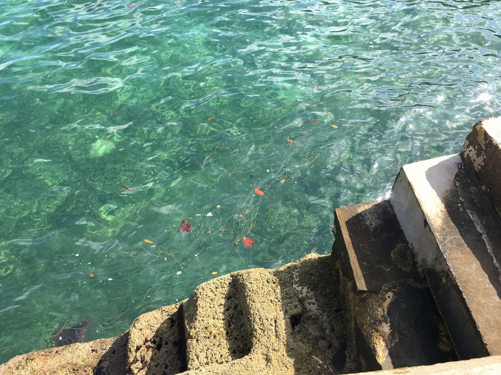So where did we go snorkeling?. Well we went down Dockyards way to get clear of the crowds, and first of all explored the Glass Beach. That beach is covered, in fact piled up with broken glass. I should have had better shoes with me, because my jandals managed but not very well. After exploring that, we went to a little bay to snorkel, and I got ‘stuck’. We went in via stairs on a dock, and I remember saying that I would need the tide to come in a little to be able to get back out. It was going out. We weren’t in very long before we decided it was no good there and decided to try somewhere else. Getting out, I tried to climb onto the stairs. They were too high for me, too slippery to get any purchase, so after a wee bit of a panic and scraping my hand, I decided to swim to the next set. Only the water was shallower at that end, so I ended up having to walk. My little feet, didn’t have enough ground cover, so I sank into the mud, and I was quickly exhausted trying to get to my intended exit point. My lovely husband, who had managed to get out at the first set of stairs, was trying to help by taking my flippers and throwing in my jandals from the shoreline. I was too slow in the silt, and they started floating off. After a lot of expletives and claiming all innocence of the bad situation, I retrieved my jandals, got them on, and made slow progress to the next slippery challenge. As I gingerly climbed the stairs, something sharp jabbed into my heel, and would you know it, a piece of glass, possibly from the glass beach earlier, came right through and sliced me proper. Blood usually gets a bit of attention, so my lovely husband pulled the glass from my foot, and after lengthy inspection, decided it was superficial. I wanted to carry on. I took about three more steps and then the pain that went through me was indescribable. My other foot, in the soft part, where the base of your big toe and the rest of your foot form that inverted v-shape, was in agony. By this time my lovely husband was getting a bit exasperated ‘what now?’. Oh the tears. I had something piercing my foot! Operation two located a long needle like slither of glass, that felt much better once extracted. Time to give up? Oh no, I was soldiering on until the end after that fiasco. We had a nice swim, but I really was exhausted, and called it a day fairly soon after that. I had proved my point.