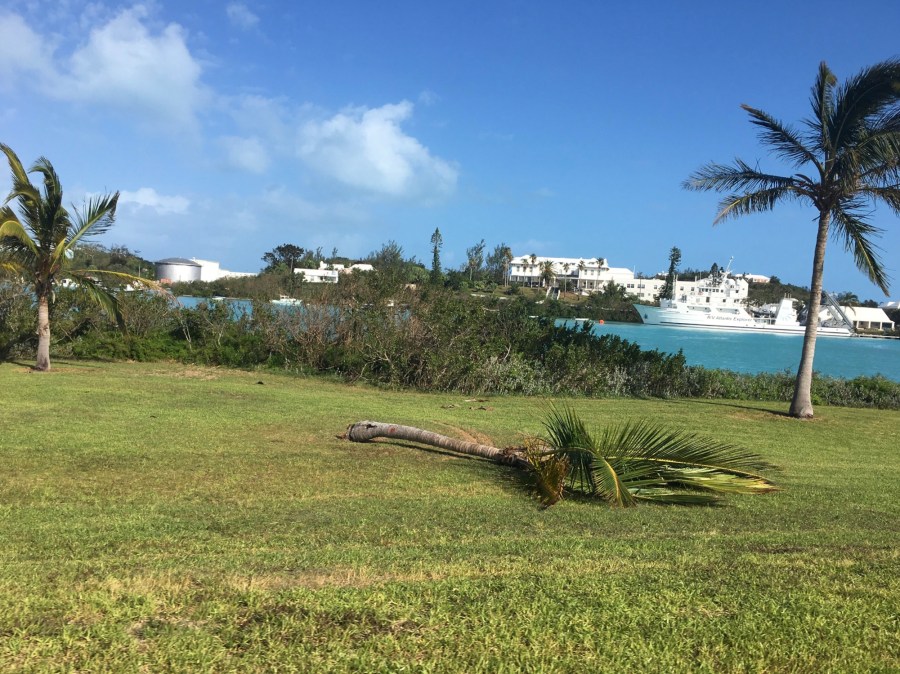 In the days afterwards we have seen the worst hit part of the island.  People lost parts of roofs, when one tile dislodges and the wind gets in underneath, the whole lot goes.  Trees have fallen onto houses and cars.  Wires are down everywhere, being rapidly repaired by Belco, the power company. In just twenty four hours the main business sector was up and running like nothing ever happened.  Bermuda houses are like bomb shelters and must be built according to specifications to withstand hurricane.  They certainly can.  I think one person got hurt in the clean up, and one had a heart problem during, but no deaths.  Thank goodness.  There’s a few more submerged boats about, and in one bay the boats are in places around the shoreline that they should never be, smashed.  Even part of the rail trail was adorned with a mangled trampoline!  I didn’t take many photos because it doesn’t seem right to publish others misfortune, when it could have easily been ours. The coast stayed rough for days especially on South Shore but we managed to snorkel a bit with our guests on the calmer side, however visibility wasn’t so great.  Life guards were taken off the beaches and people were encouraged not to swim.  Humberto was followed closely by other weather systems, Imelda, Jerry, Karen, and Lorenzo, which is winging it’s way towards the UK right now.
