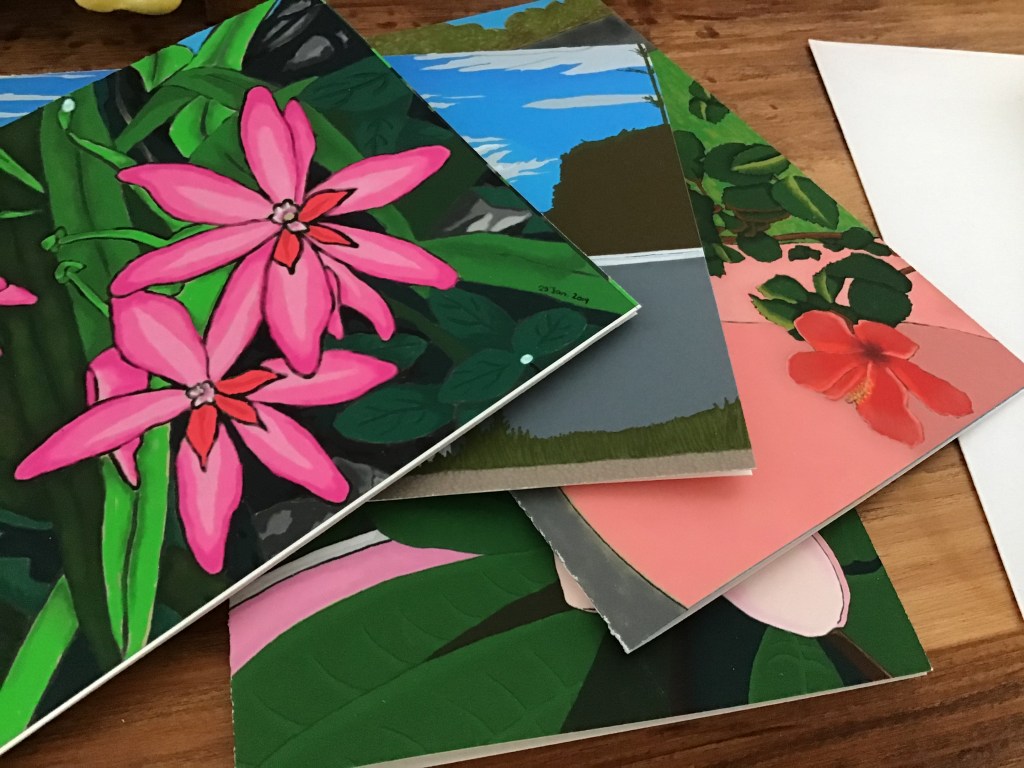 Now today I asked for the car, and raced my husband into his work, went to the laundry to get a load of washing done, and then went off to St George’s. I had a cunning plan. There’s a printer there, and I wanted to try popping some of my wee drawings onto cards. I had already emailed them, and was dismayed that I only got half of the link when sending the drawings through. Never the less they found them via a photo I had taken. I always take a photo of my screen now when I do anything that seems complicated on my computer, it has saved the day many times. Today it allowed them to access the link, download my drawings, and print up some lovely little cards for me. I’ll start a new page with the cards and what they look like. I can’t sell them here in Bermuda, but if you live here and would like some, I can always accept a donation……as for the rest of you, I’ll sort a price, heh heh. I’ll get that organized next week. My lovely husband said ‘You will need about two dozen pictures first, people like choice’. Maybe, but the four I have took me forever. Anyway you can all let me know what you think.