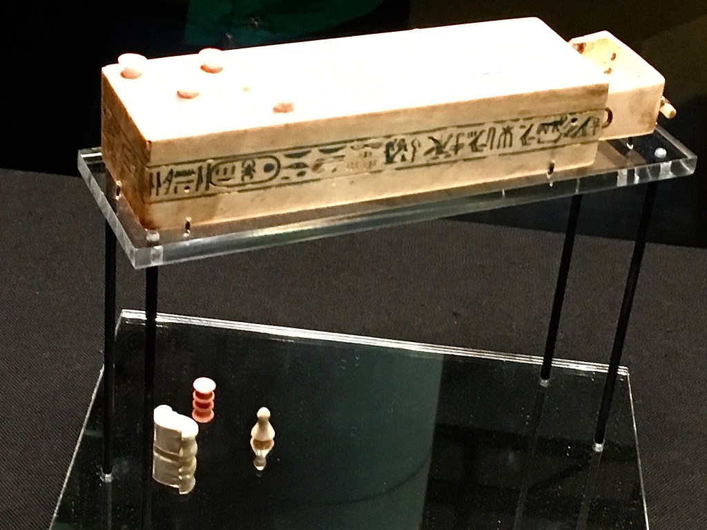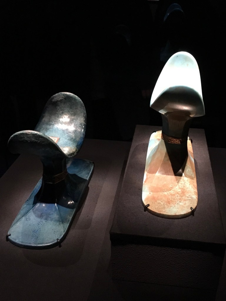Tutankhamun only ruled for ten years, and died an early death at nineteen.  The most amazing thing is that all these treasures buried with him have survived for centuries, and look like you just moved them out of your house.  The next Pharaoh tried to wipe out all existence of Tutankhamun, which would have contributed to the preservation of these amazing artefacts, his tomb buried and lost for centuries.  His body and the real solid gold mask weighing in at a mere ten kilograms, is in the museum in Cairo.  I read an article that stated the mask was actually intended for his mother, and given to him on his death.  This and the small tomb size indicate that he died suddenly and unexpectedly.  It was thought for years that a hole in the back of his skull meant he’d been killed by a blow, and in fact assassinated.  New technologies have now indicated that he most likely died from an infection in his leg, and the hole in his skull would have been made during the mummification process.  Yuk.