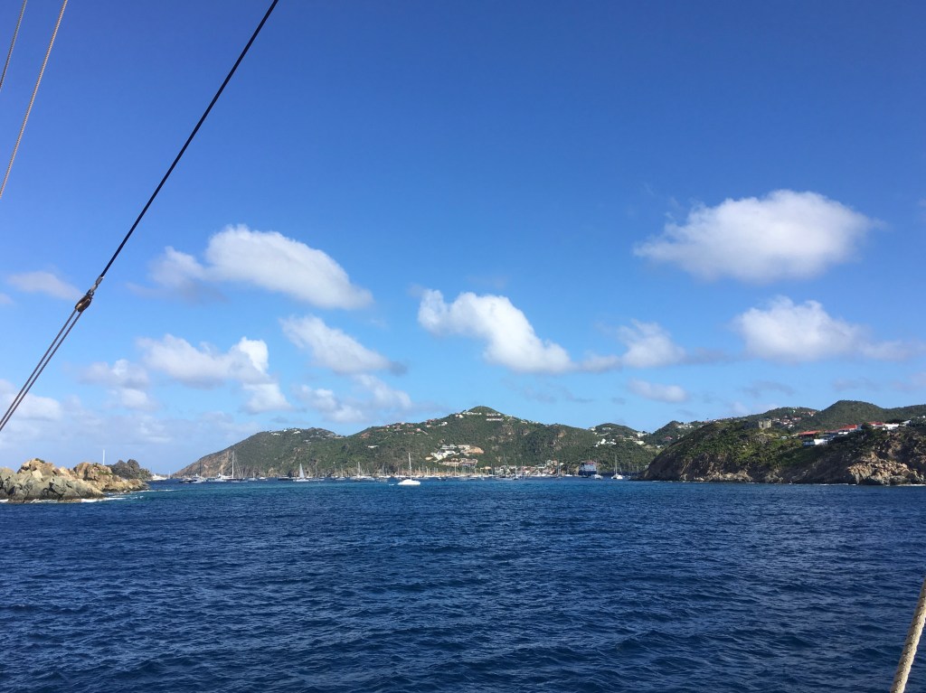 Once we got underway, we were sailing to St Barthélemy. Then it was happy hour. Happy hour so early in the morning, I hear you ask…..that means cleaning time. Depending on what watch you are on, depends on what part of the ship you are rotated to for cleaning duty. It might be cleaning the salt off the main deck, or polishing the wooden railings, or cleaning the walls and toilets and showers downstairs, or washing the floors. Everyone gets a job that’s not on watch, and pitches in. It doesn’t take very long, and is ability appropriate. We then sailed through the day and night. Our first official watch was a really nice one called ‘last dog’ from six to eight at night. We got to see the sun setting, and we all had a go at steering at the helm. I didn’t really like doing it, but took my turn when it was needed along with everyone else.